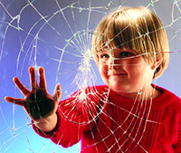 Veiligheids- of anti-fragmentatiefolie houdt gebroken glas bijeen. Daardoor voorkomt het in geval van breuk het rondvliegen van glassplinters.